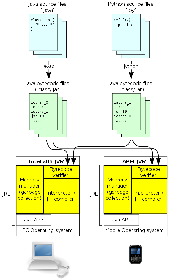 Així, el codi resultant no es pot executar directament sobre el nostre hardware, sinó que cal una màquina virtual que realitzi la traducció final. L'objectiu és aconseguir un codi multiplataforma, fent que aquest codi sigui exectuable en qualsevol plataforma que implementi la JVM (Java Virtual Machine).